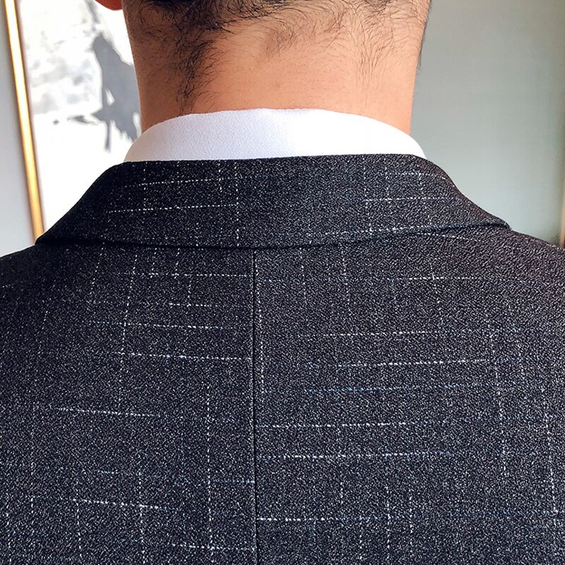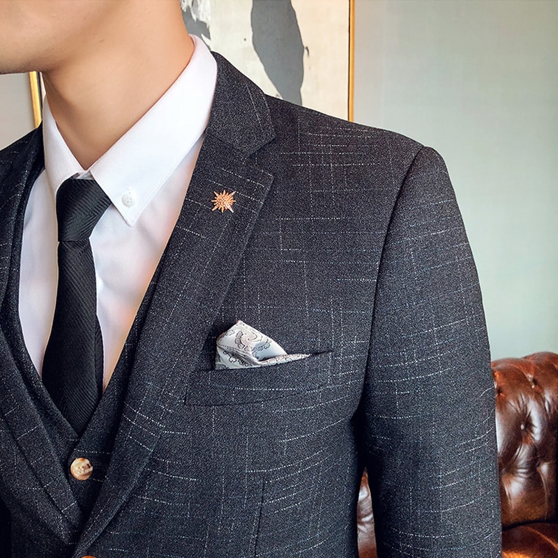 Large Size 7XL ( Blazer + Vest + Pants ) Groom Wedding Dress Dark Plaid Classic Retro Men's Formal Business Suit Three-Piece Set