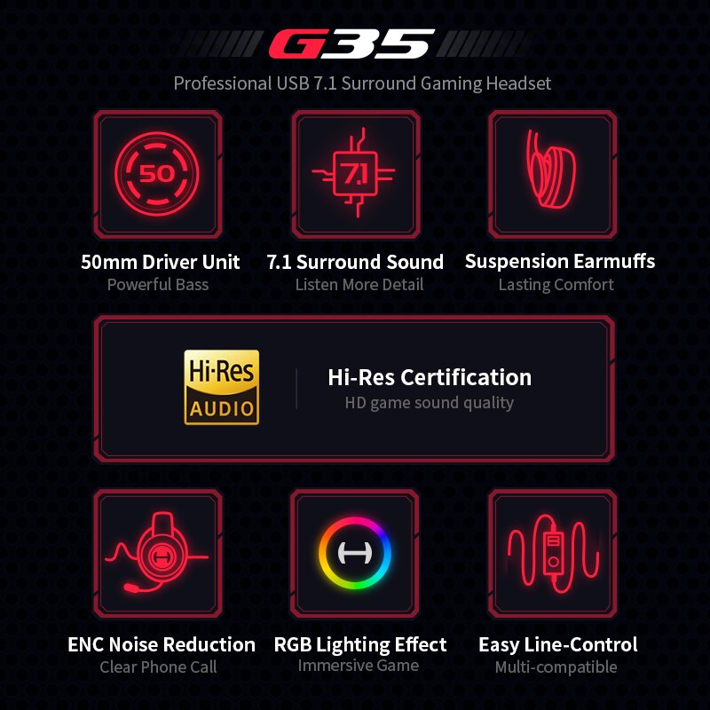 EDIFIER HECATE G35 Gaming Headset Hi-Res 7.1 Surround USB Gamer Headphone 50mm Driver/Detachable Mic/Inline Control/RGB Lights