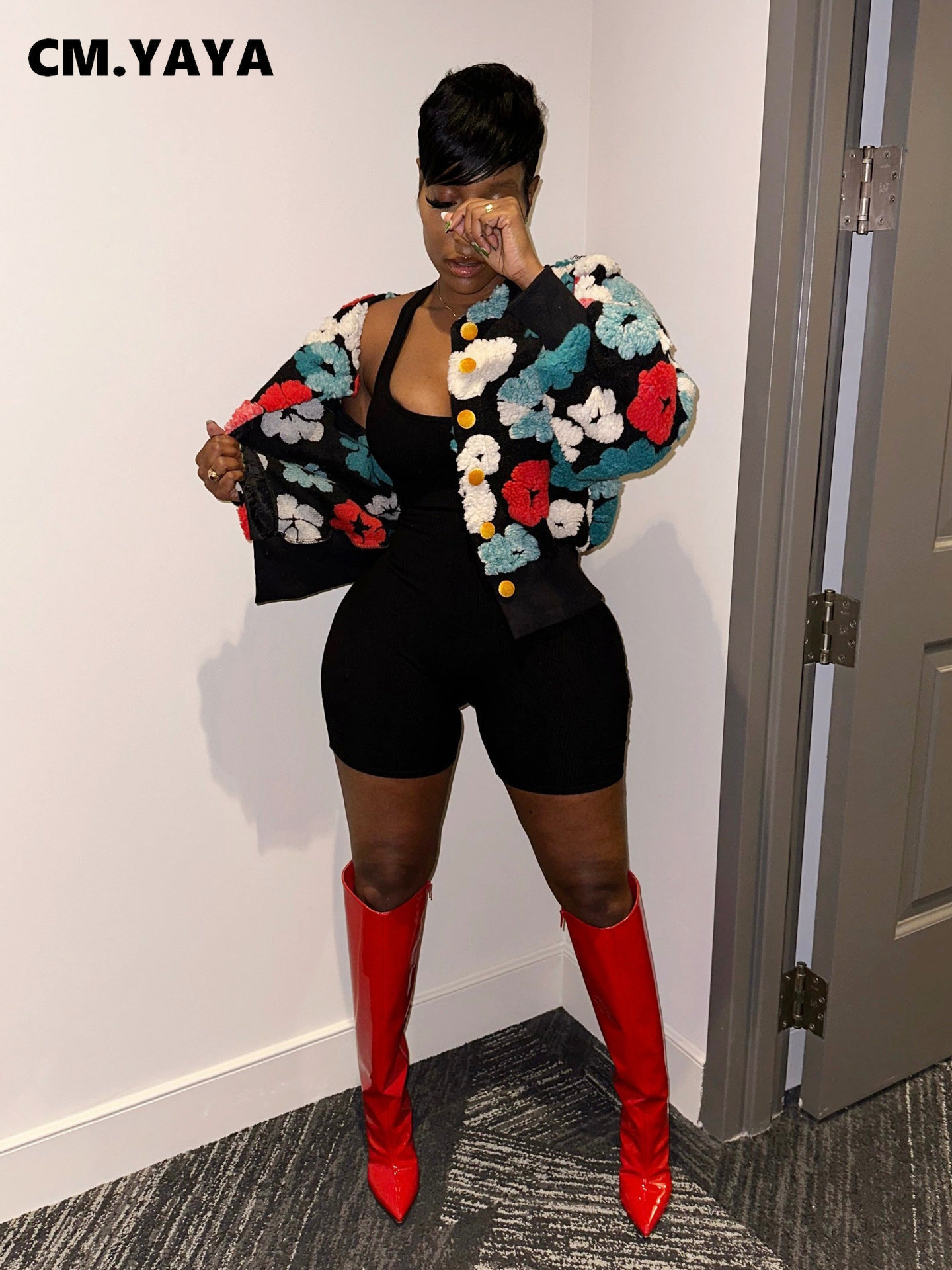 CM.YAYA Elegant Women Button Front Floral Appliques Long Sleeve Jacket Thick Warm INS 2022 Winter Streetwear Fashion Outwear