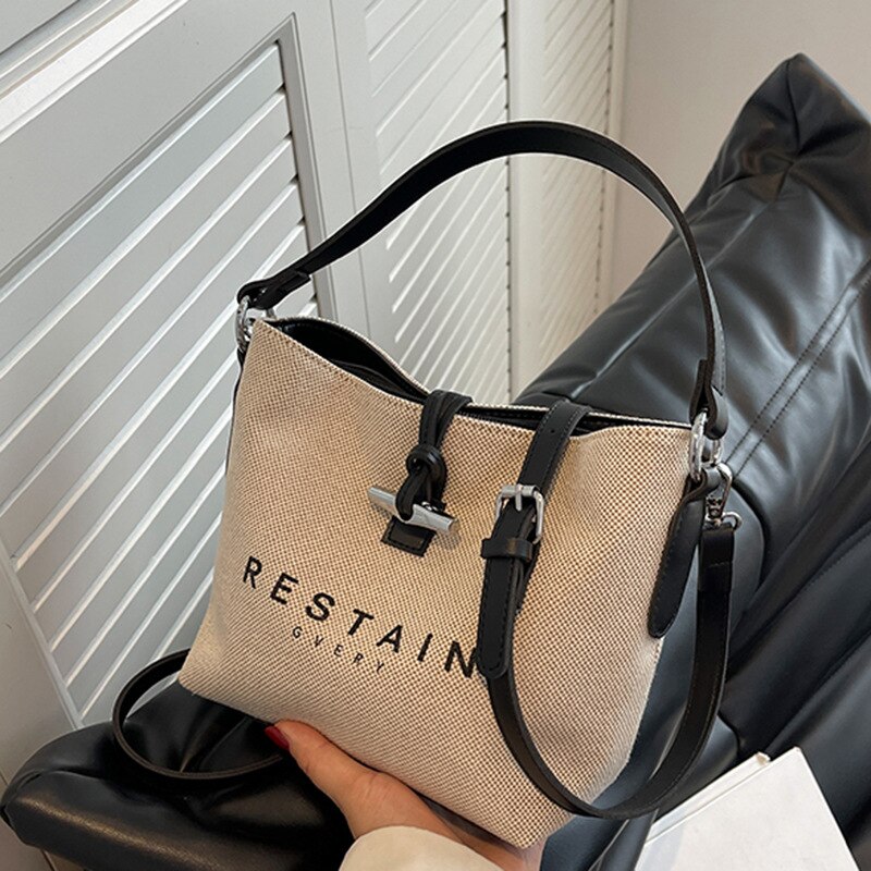 Women's New Popular Canvas Shoulder Bags Fashion High Quality Satchel Versatile Handbag Simple Casual Retro Bucket Crossbody Bag