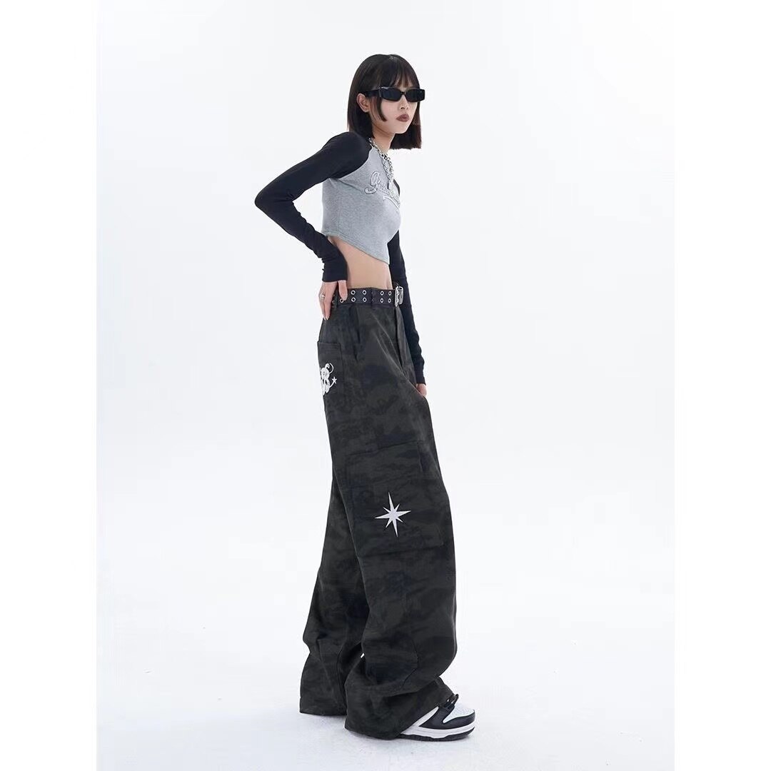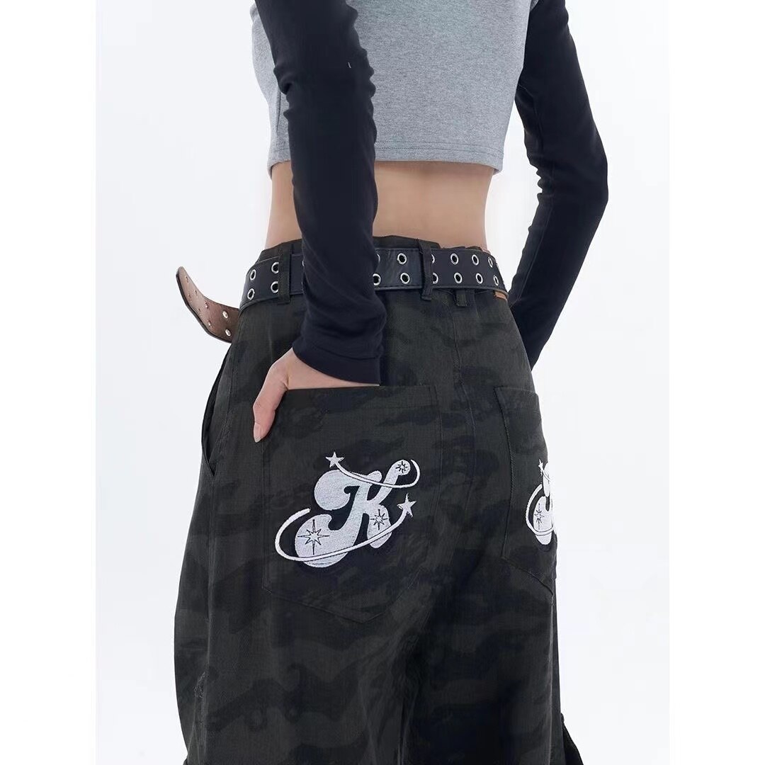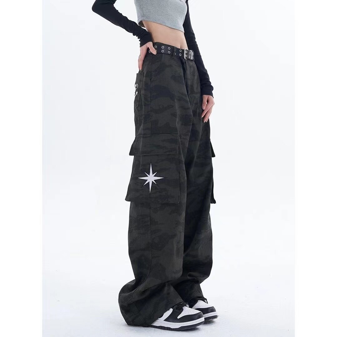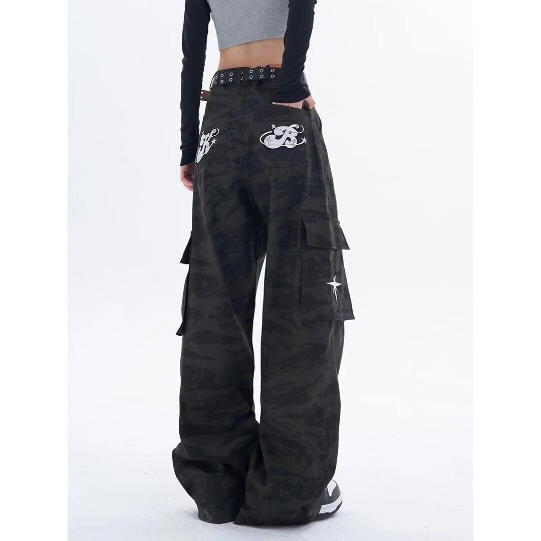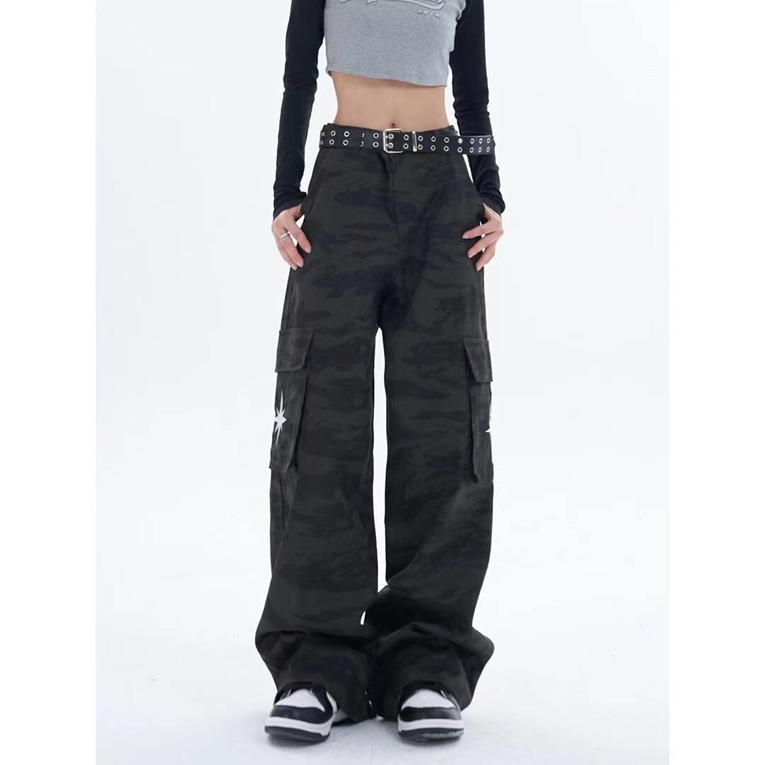 Y2K Women Vintage Streetwear Baggy Camouflage Star Cargo Jeans High Waist Straight Wide Leg Pants Oversize Trousers Alt Clothes