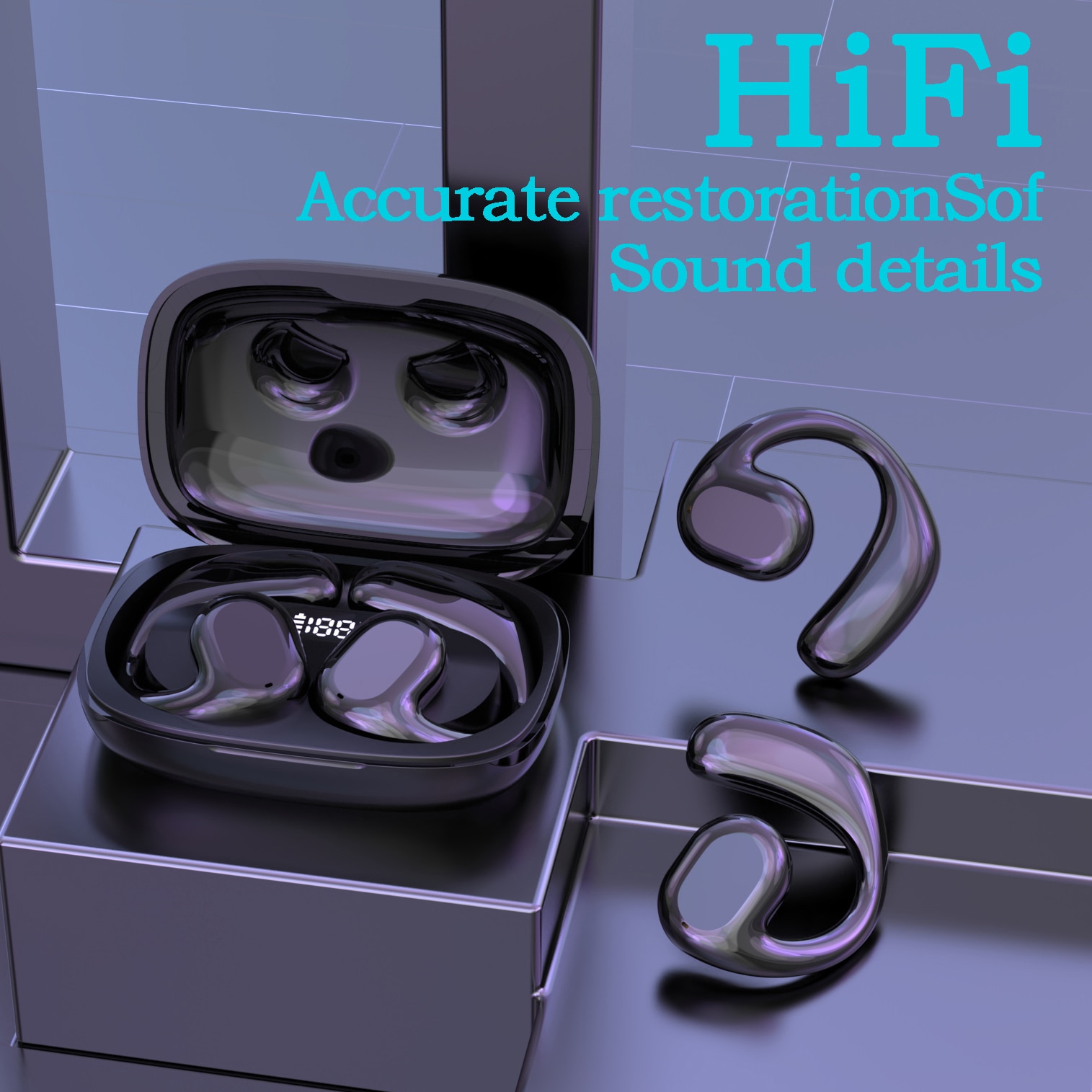 5.3 Bluetooth Earphones Wireless Headphones TWS Earclip Design LED Earbuds Ear Hook Sports Headset with Mic