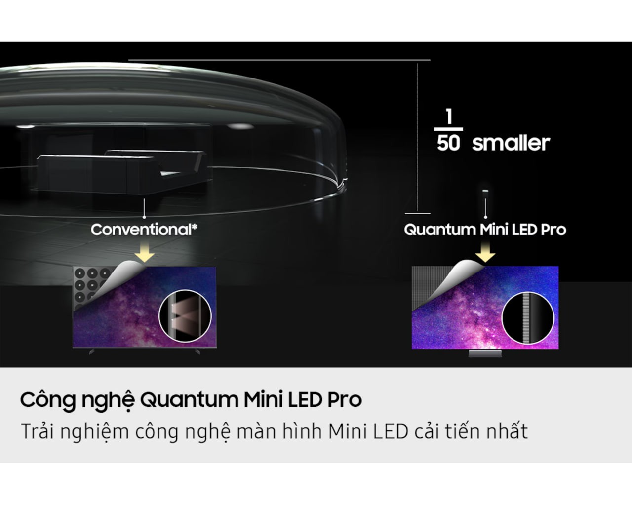Với kích thước chỉ bằng 1/50 đèn LED thông thường, đèn nền Quantum Mini LED Pro trên TV Neo QLED 8K có thể kiếm soát độ sáng chuẩn xác, giúp tái hiện sắc nét những chi tiết không tưởng dù là sắc đen sâu hay sắc trắng tinh khiết, với số vùng sáng nhiều hơn gấp 1.5 lần so với công nghệ đèn nền Quantum Matrix Plus.