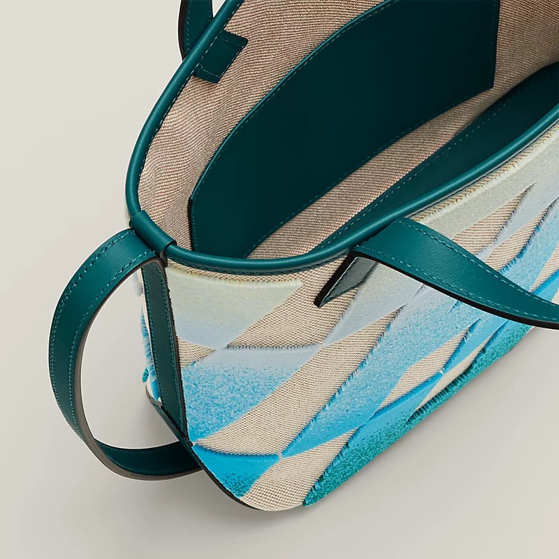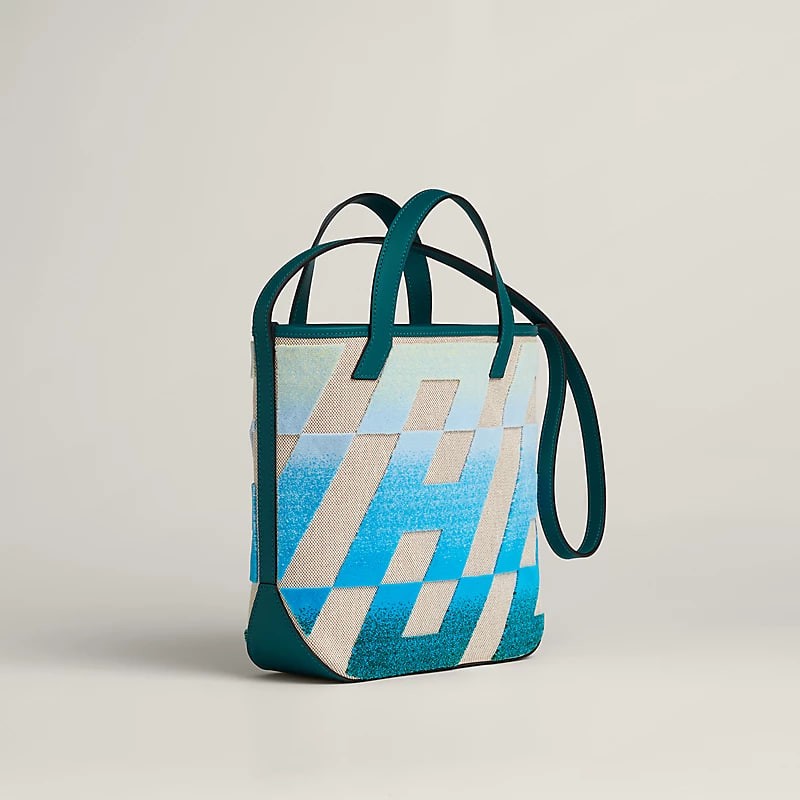 H canvas and Swift calfskin tote with tufted 'italic H' and fitted with a shoulder strap.